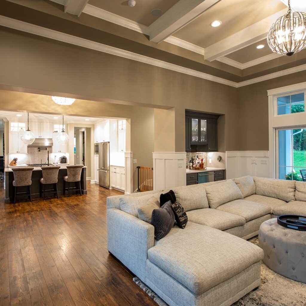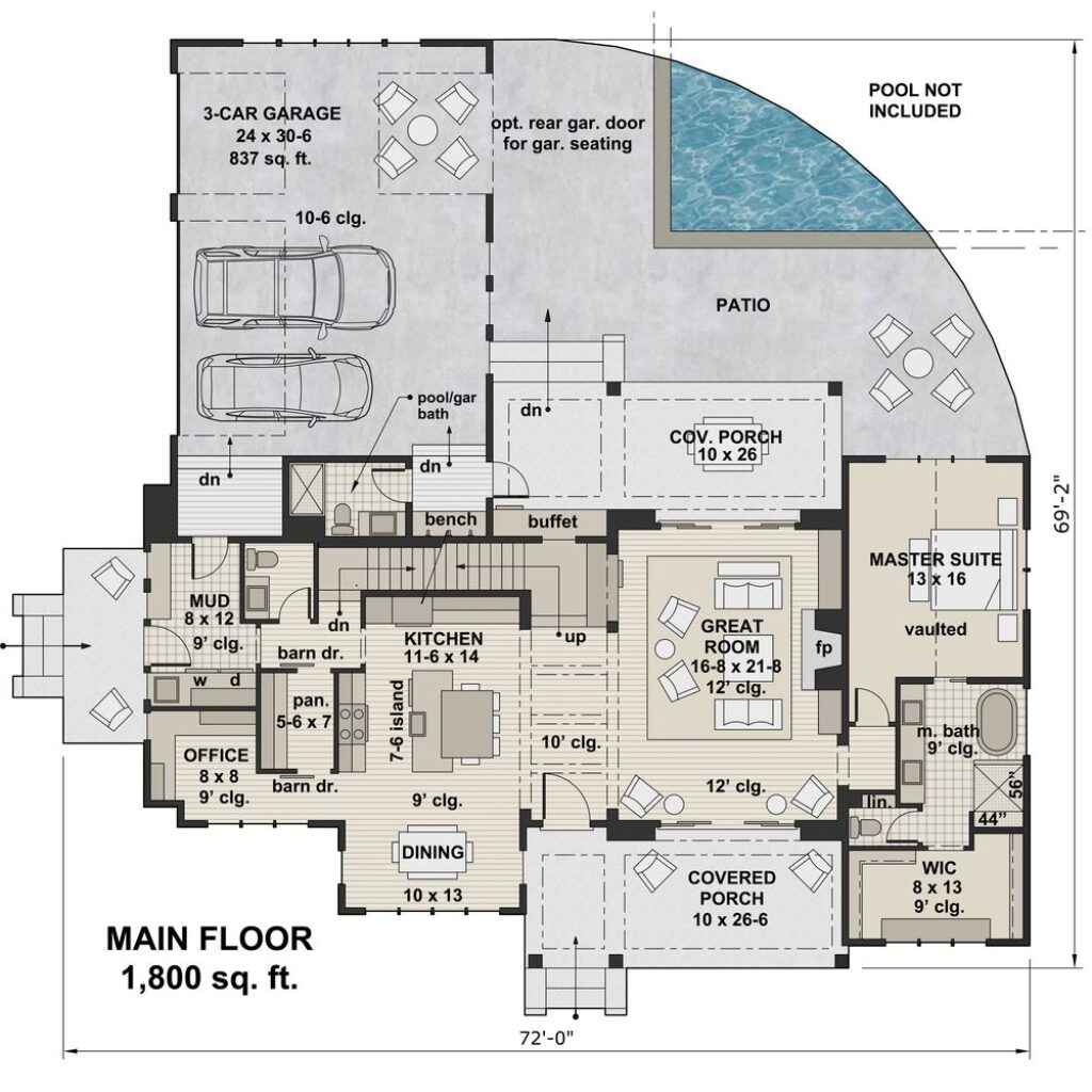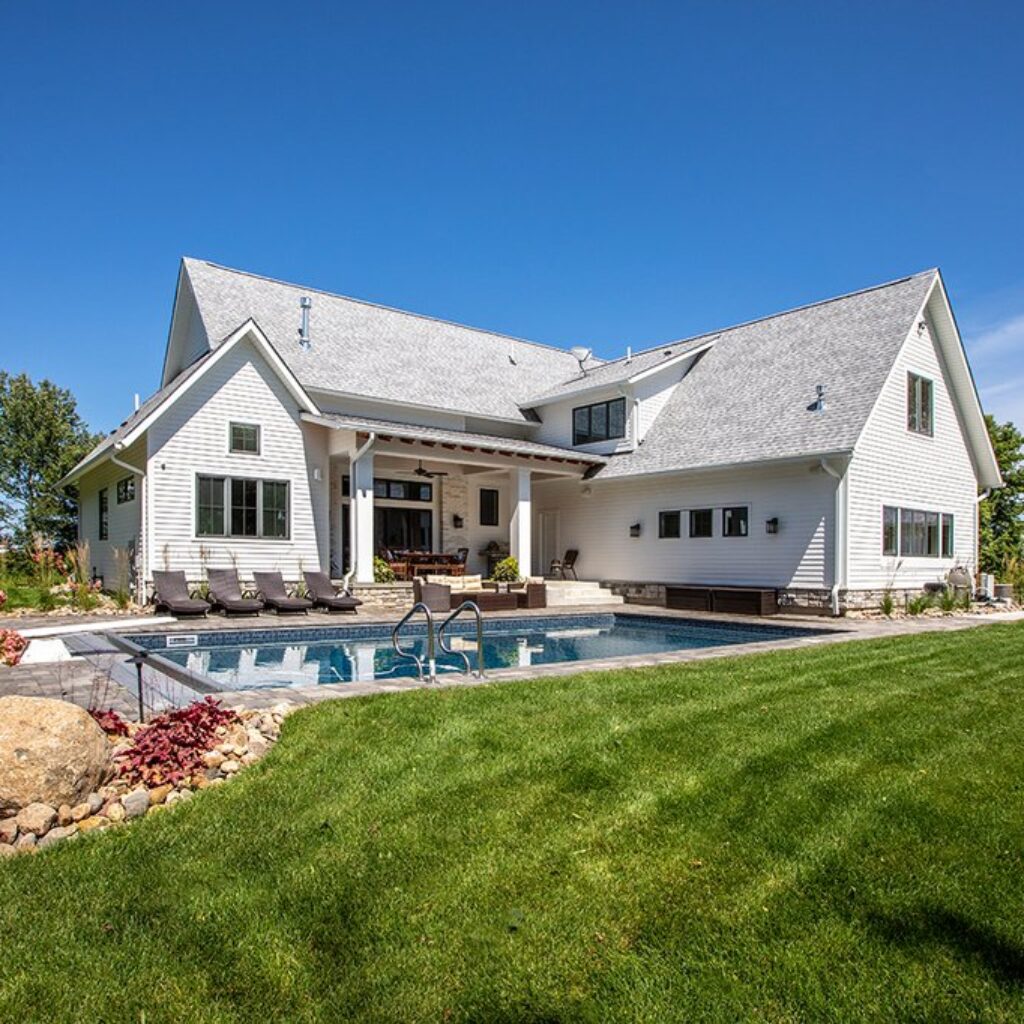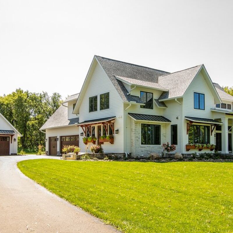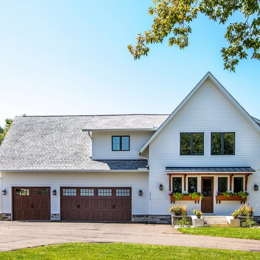 This top-selling modern farmhouse spans 2886 sq ft and uniquely blends contemporary features like its metal roof with rustic touches such as thick cedar beams. Spread across two floors, it houses 4 bedrooms and 4 1/2 baths. The expansive kitchen stands out as a centerpiece of the home. The master suite overlooks the backyard and boasts a private bathroom with a tub strategically placed for serene views, and a separate shower. To complete the package, there’s a three-car garage, making it both stylish and functional.